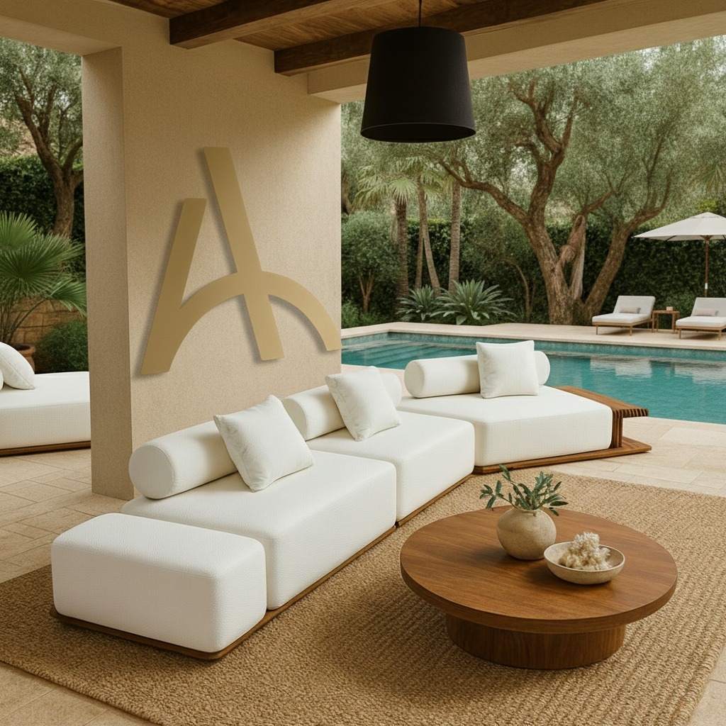 Transforme seu ambiente externo em um verdadeiro refúgio de conforto e estilo com o Presença Absolutta – Sofá Modular Obelisco.